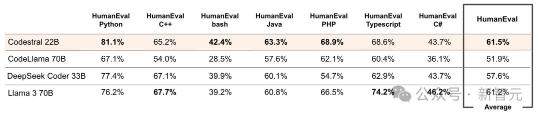 Codestral使用了Llama架构,但在7种语言的HumanEval均分超过了CodeLlama,可以和Llama 3打个平手。