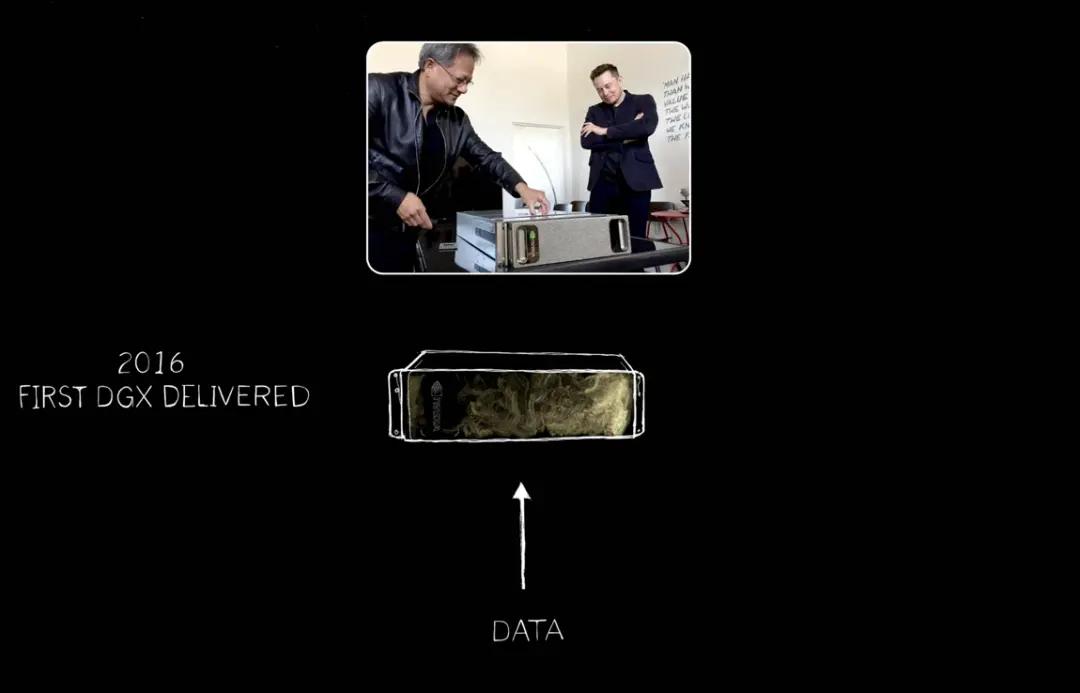 2016 年,黄仁勋向 OpenAI 交付了第一台 DGX,世界上第一台 AI 超级计算机。之后,继续扩展,从一台 AI 超级计算机,一台 AI 设备,扩展到大型超级计算机,甚至更大。