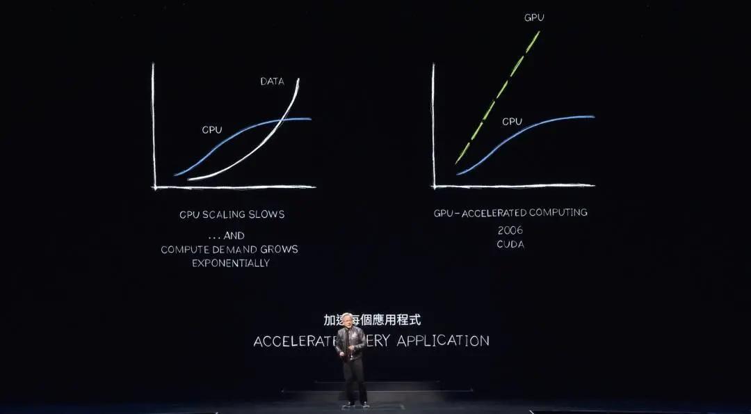 英伟达相信,通过大幅降低计算成本,市场、开发人员、科学家、发明家将继续发现越来越多的算法,这些算法消耗越来越多的计算资源,最终会发生质的飞跃,计算的边际成本如此之低,以至于一种新的计算使用方式出现了。
