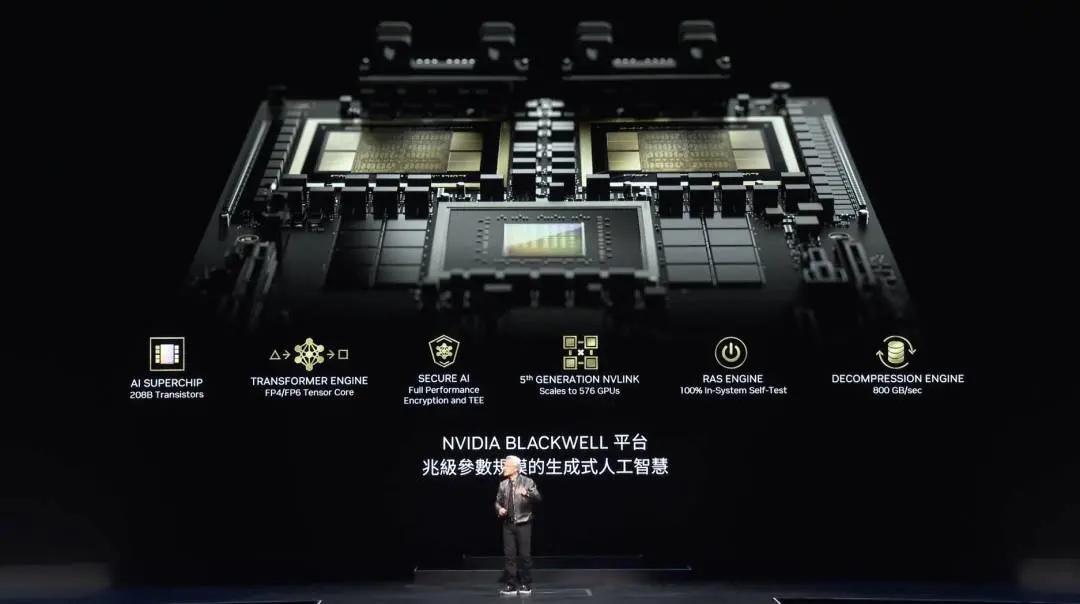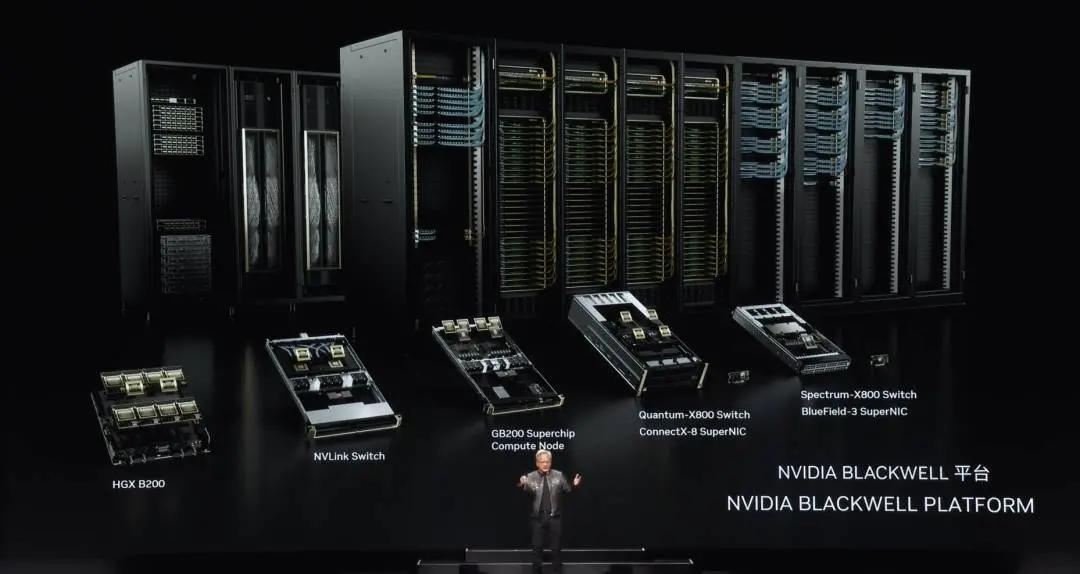 Blackwell 当然是英伟达平台的第一代,在世界认识到生成式 AI 时代来临之际发布。正当世界意识到 AI 工厂的重要性,正值这一新工业革命的开始。英伟达得到了几乎所有 OEM、计算机制造商、云服务提供商、GPU 云、主权云,甚至电信公司的支持。Blackwell 的成功、采用和热情真是难以置信。我想感谢大家。