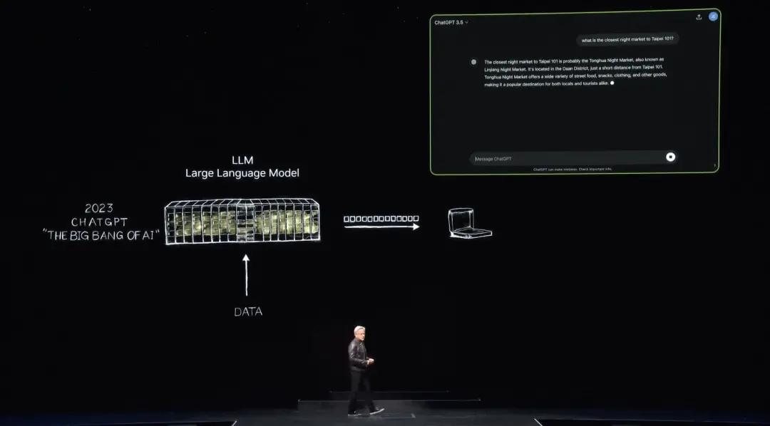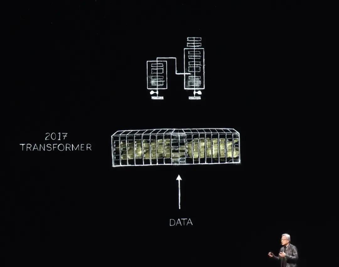 到 2017 年,世界发现了 Transformer,使能够训练大量数据,识别和学习长期序列模式。现在,英伟达可以训练这些 LLM,理解并在自然语言理解方面取得突破。继续前进,建造了更大的系统。