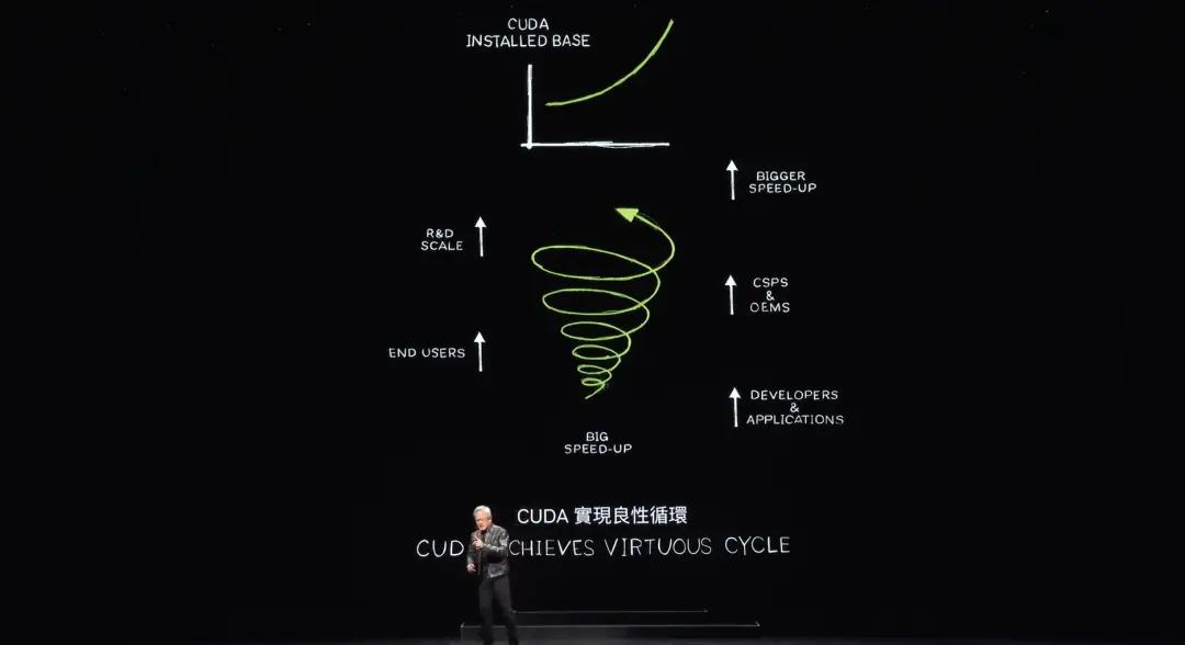 当你将数据处理加速到如此快的速度时,演示确实不会花很长时间。现在 CUDA 已经达到了人们所说的临界点,但它甚至更好。CUDA 现在已经实现了一个良性循环。