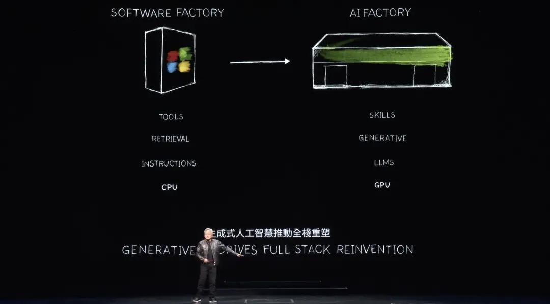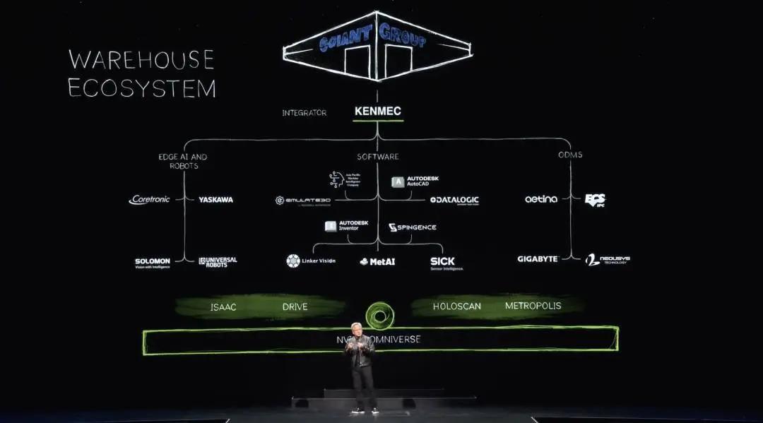 黄仁勋继续表示,工厂有一个完全不同的生态系统,富士康正在建造一些世界上最先进的工厂。它们的生态系统再次包括边缘计算机和机器人,设计工厂的软件、工作流程、编程机器人以及协调数字工厂和 AI 工厂的 PLC 计算机。英伟达有连接到每个生态系统的 SDK,这在整个台湾都在发生。