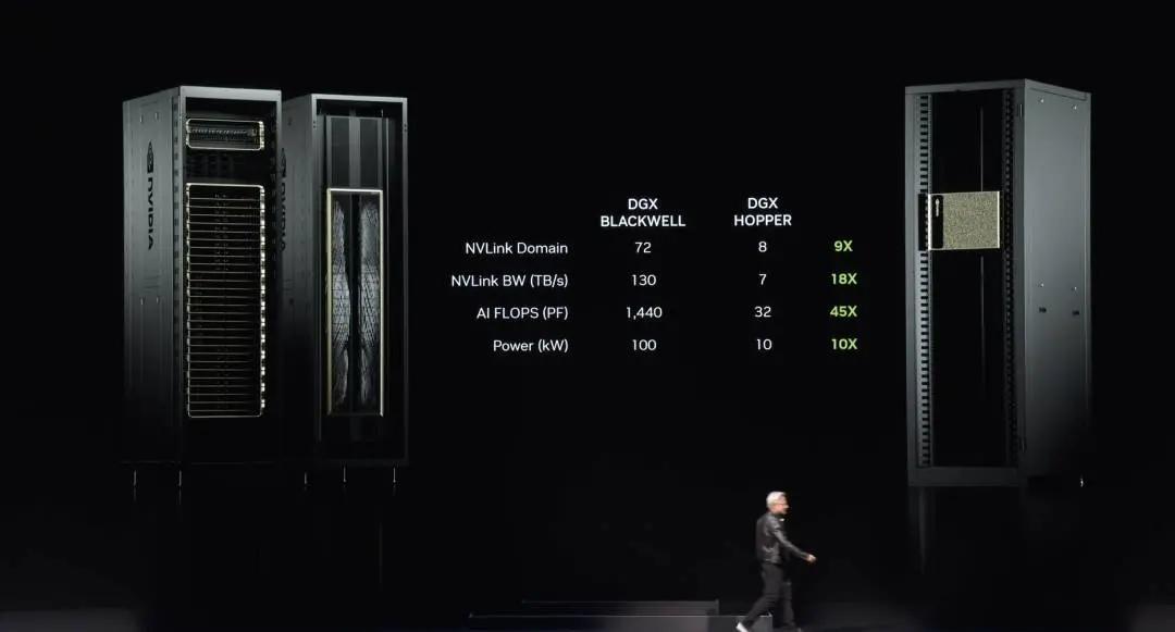 Blackwell 是一个巨大的飞跃。即便如此,它还不够大。因此必须建造更大的机器。因此英伟达建造的方法叫做 DGX。