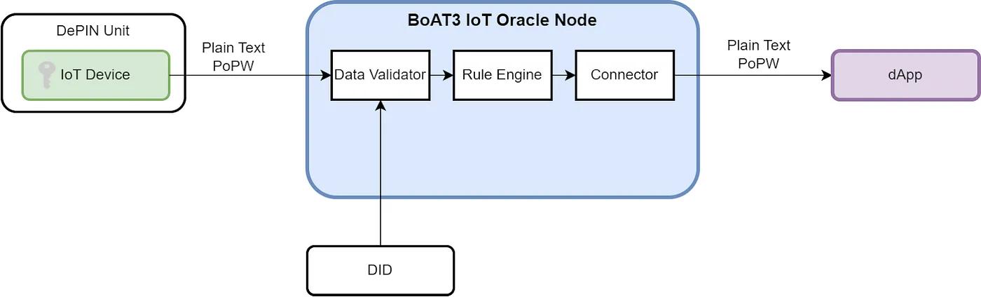 2.签名的 PoPW 以明文形式发送到 BoAT3 物联网预言机节点。