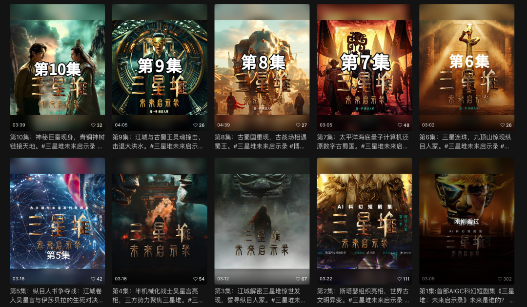 此外,博纳影业AIGMS制作中心出品的《三星堆:未来启示录》一经上线也取得了显著的成绩和反响。博纳影业行政总裁蒋德富表示,博纳采用电影工业化流程,利用AI制作这部短剧,目的是利用自身成熟的电影经验,去提升AI短剧的技术含量,通过AI短剧赛道讲好中国故事。