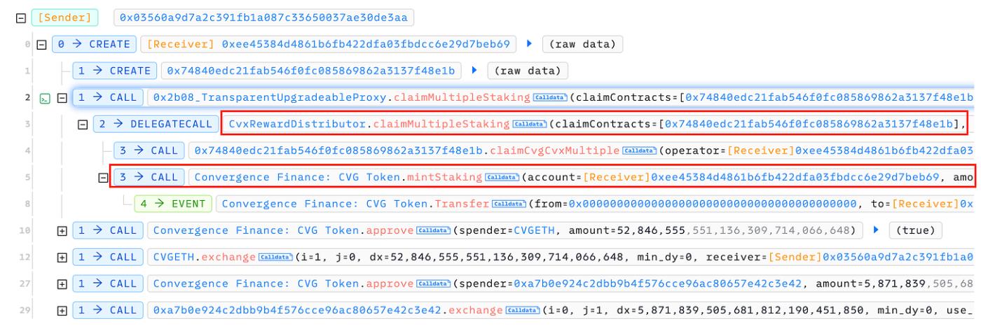 2024 年 8 月 1 日,Convergence-Fi 项目的CvxRewardDistributor合约被利用,造成约 21 万美元的损失。让我们来看看这次攻击是如何发生的细节。
