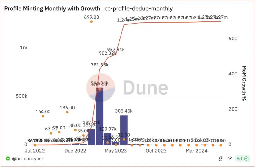 图源:https://dune.com/buildoncyber/cyberconnect-link3-metrics