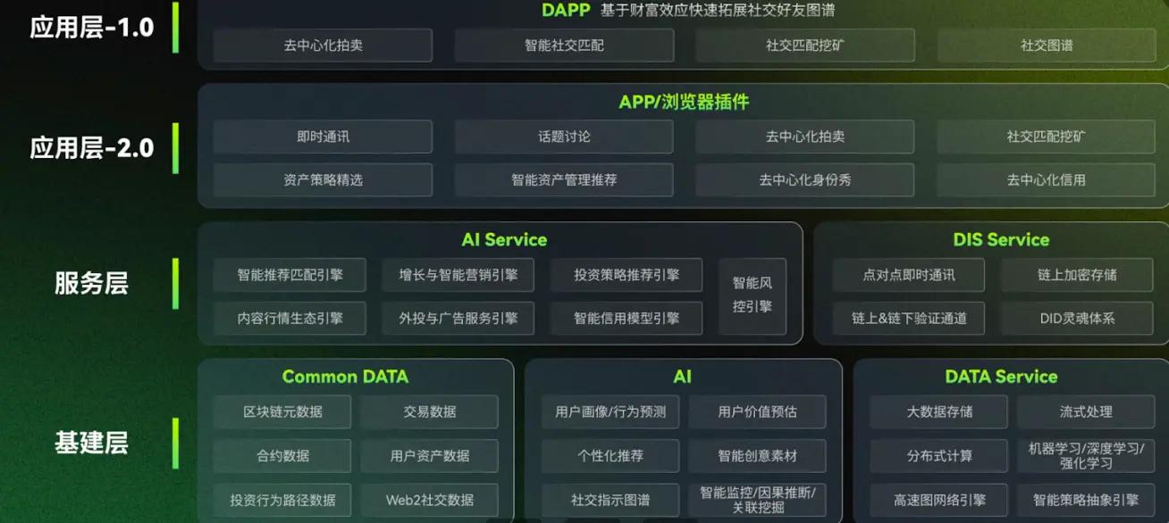 从生态看,Match 本身也是一个具备可编程性的底层协议,包含服务层和基础设施层,以及一系列 AI 组件。基于该基础设施层,Match 支持基于底层建立上层应用,并与其身份系统形成联动,并以模块化的方式为开发者提供支持,为后续社交生态的爆发做准备。