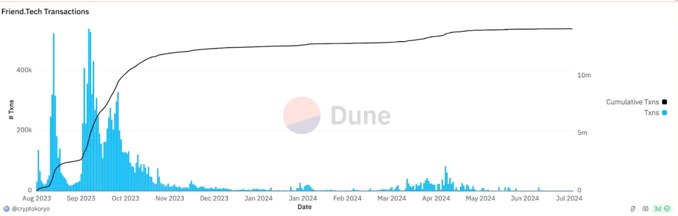 数据来源:https://dune.com/cryptokoryo/friendtech