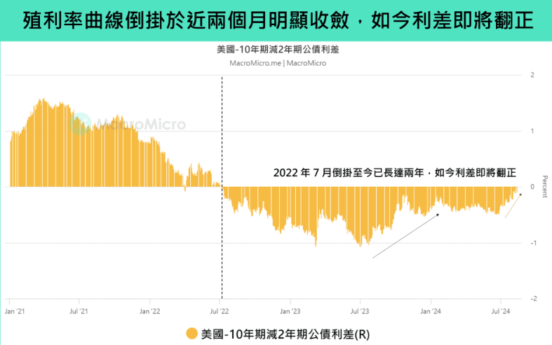 殖利率倒挂结束通常意味著经济前景改善,市场信心恢复,投资者可能会重新进入风险资产,推动股市上涨。而降息让企业融资成本降低,也有助于企业扩大投资和经营。