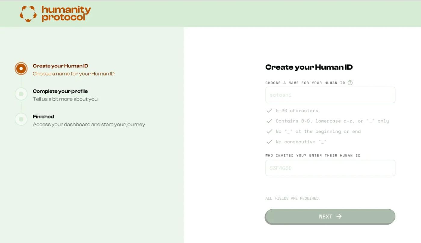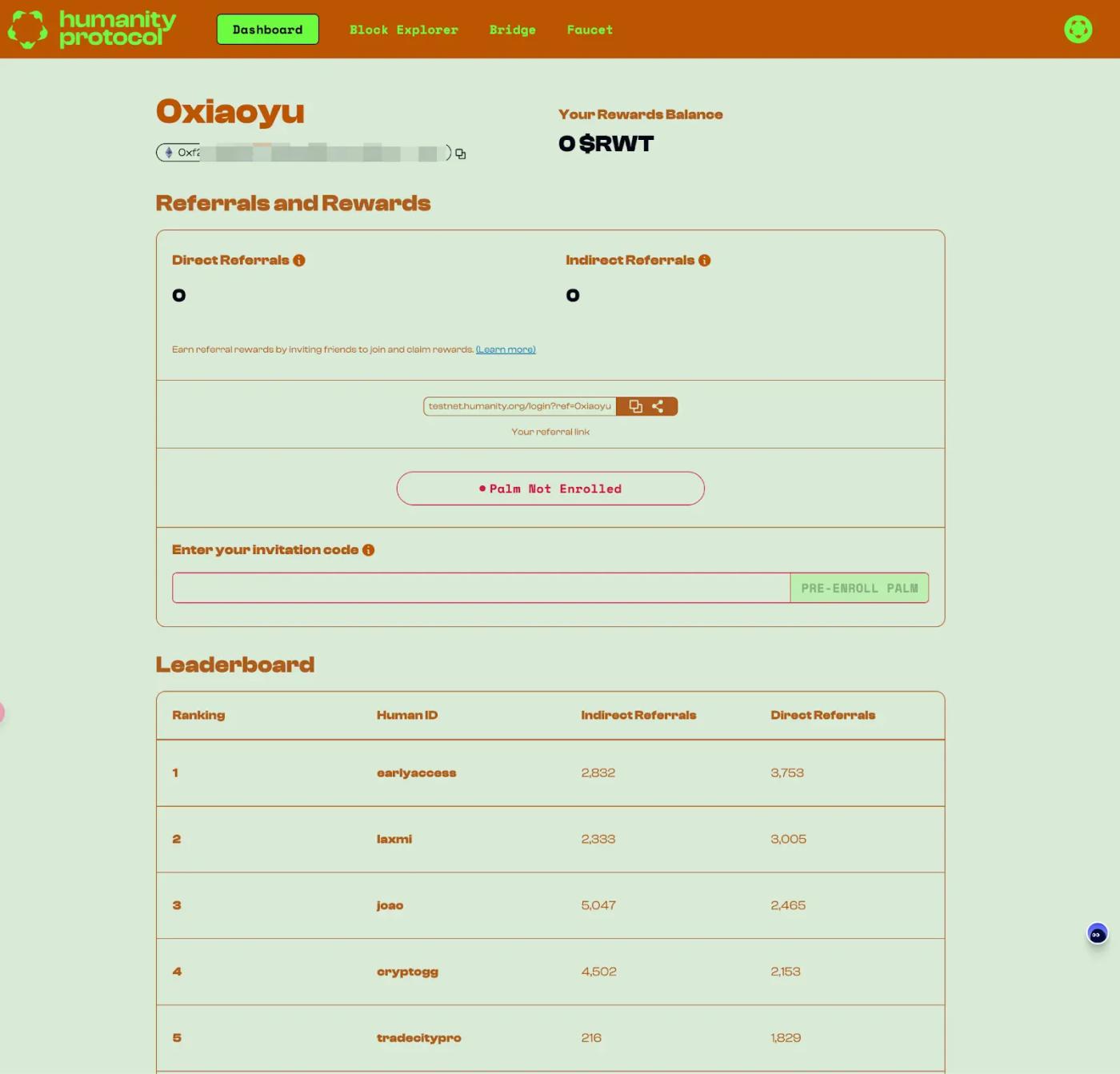 这是当前正在进行的阶段。你可以通过官方网站(testnet.humanity.org/login?ref=0xiaoyu)预留你的Human ID。这个ID将成为你在Humanity Protocol生态系统中的唯一标识。