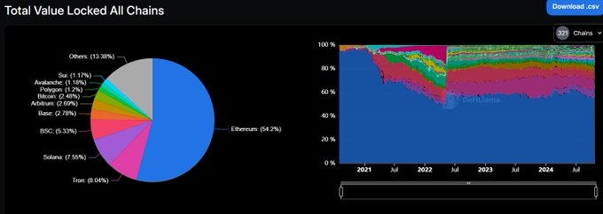 目前市场上的诸多新兴趋势 —— 如 AI、RWA(现实世界资产)和 memecoin—— 大多未选择以太坊为主平台。许多新兴 AI 专案(如 Fetch、TAO)和 RWA 专案选择了更适合的独立网路和底层架构,而在 memecoin 领域,Solana 的表现显然更为亮眼。这意味著以太坊虽开启了去中心化的大门,但其他网路正在成为最新叙事的主导者。
