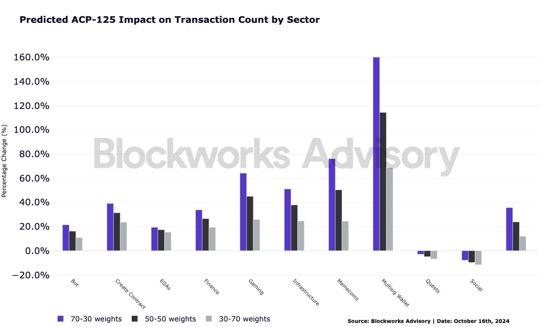 我们结合标准化技术和部门加权,为不同场景提供稳健的预测,突出 ACP 125 对交易增长、活跃地址和费用/gas 消耗的潜在影响。