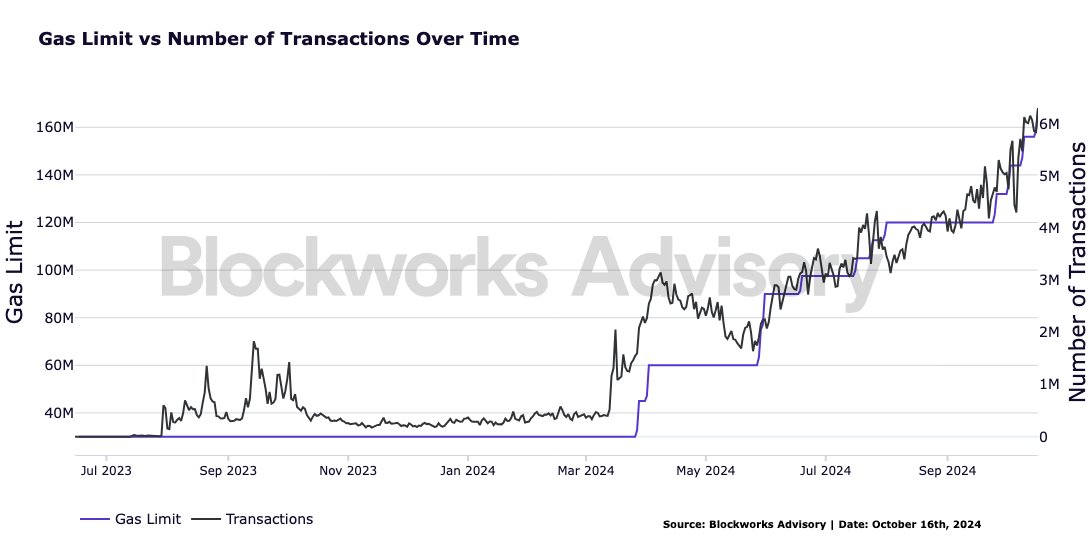 可以通过 Base 上的两个重要费用降低机制来观察交易成本与网络活动之间的关系:第一个是定期增加 gas 限制。