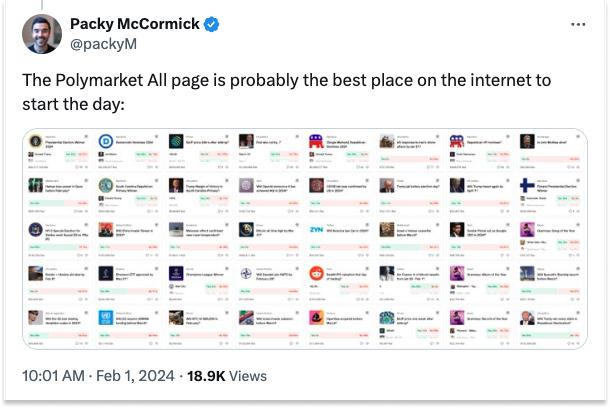 就我个人而言,近一年来,我每天早上都会在Polymarket 主页上浏览我的新闻,然后再查看传统媒体。