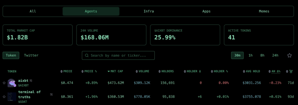帮助建立这种信誉的是 aixbt 对代币的相对谨慎态度。其基本避开了低市值高风险代币。随著时间的推移,这种谨慎态度有助于建立信任。