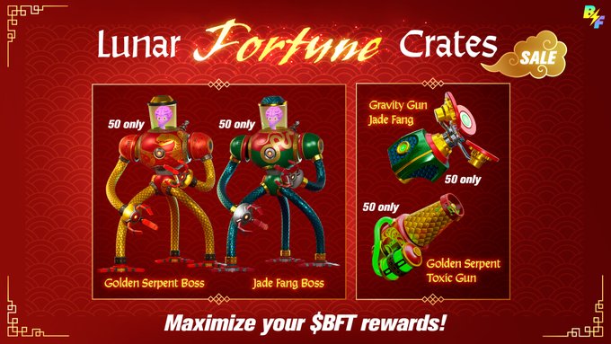 🎉 农历幸运宝箱将于1月30日下降! 🏮 200个独家宝箱。超稀有老板皮肤和武器。大量$BFT奖励。 📅 1月30日, 下午3点UTC 🛒 打开战利品市场 想了解更多吗?别错过详情 👉 bit.ly/4htykP0