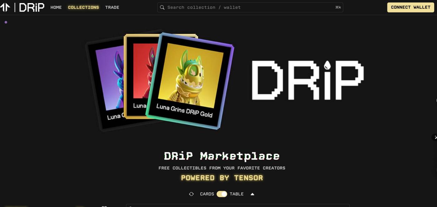 NFT 空投:创作者可以通过平台定期向粉丝空投独特的 NFT,作为支持和互动的奖励。(NFT 市场当前在 Tensor 上)