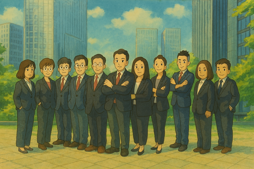 •一堆穿著西装、拿著加密货币钱包的角色,被转化成吉卜力风格。
