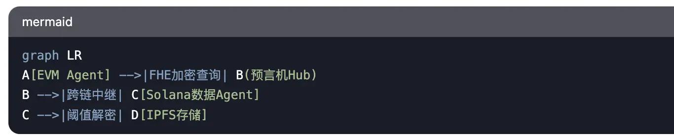 Agent用FHE加密持仓数据,向预测Hub查询信号;