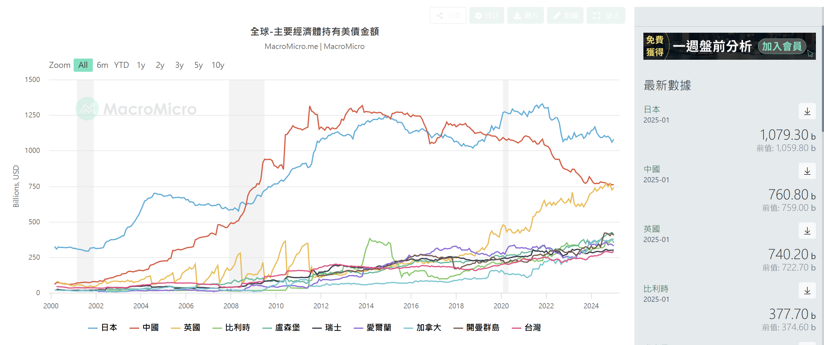 此外,中国也在持续购买黄金,减少对美元和美债的依赖。