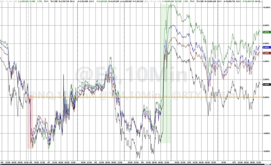 - 周一,因所谓的乌龙关税讯息,美股上演 15 分钟脉冲式巨震,纳指一度低位暴拉 10%,美债跳水。