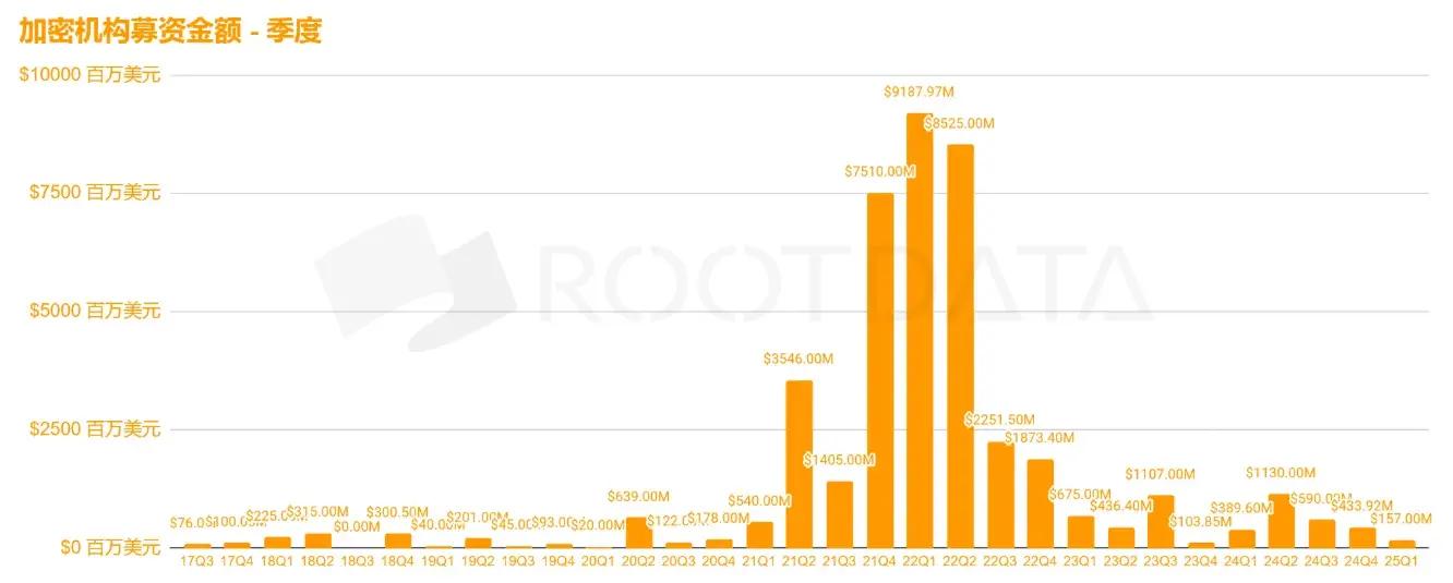 季度数据印证颓势:2024年Q2后(BTC减半周期)募资金额回落至4.2亿美元,与2020年DeFi崛起前水平相当,本周期牛市并未给加密机构募资带来增量资金