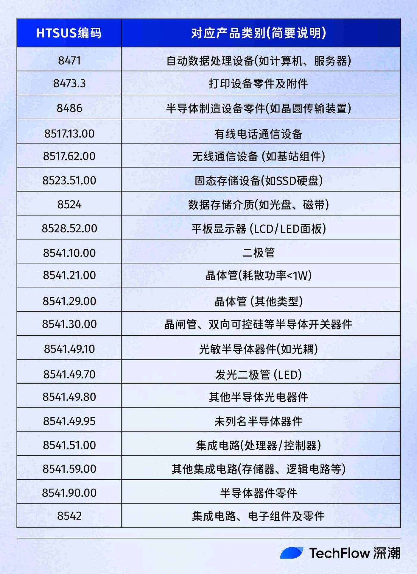 4 月 12 日,美国CBP官网发布了《特定产品对等关税豁免指南》,20项商品编码得到关税豁免。