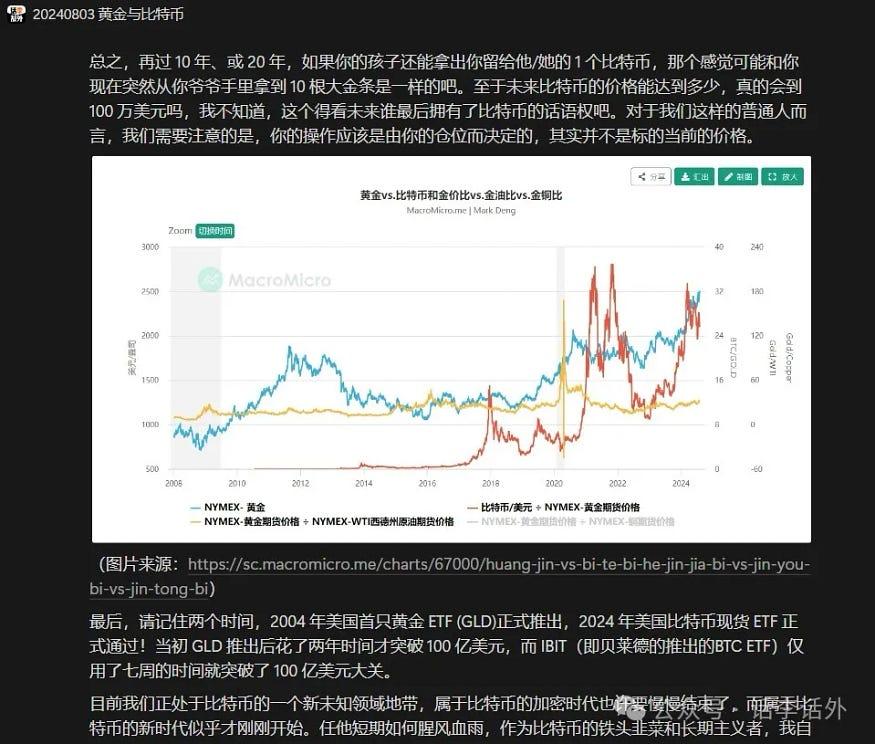记得在去年的一篇文章(2024年8月3日)中,我们就专门针对黄金与比特币的话题做过一些梳理。如下图所示。