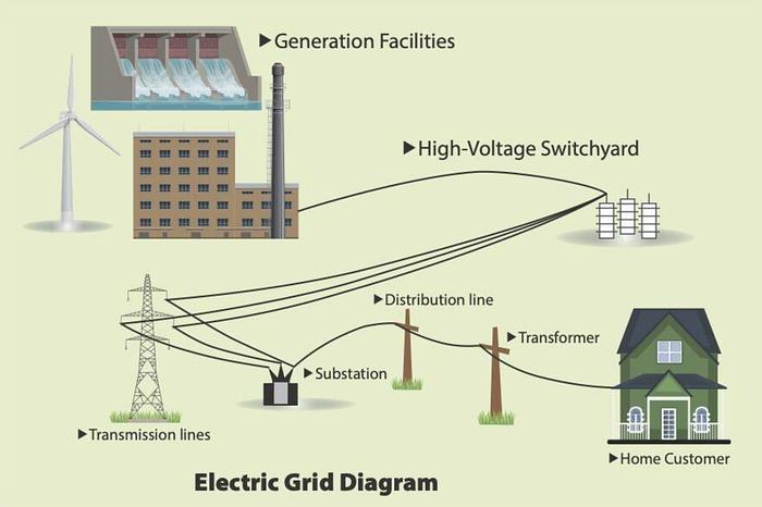用新部件替换旧部件可能导致停机,而大规模整合可再生能源也很困难。与此同时,能源生产和传输的过程本身就相当复杂。借鉴Ryan McEntush最近的一些研究,我们可以这样描绘电网结构: