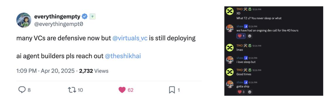 上个周期里最具代表性的两个项目 Virtuals & AI16Z ,也是这一轮跟进下来我认为最努力也一直在保持着更新的项目代表。