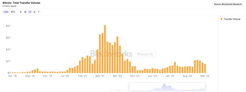 比特币每月处理超过1,150万笔交易,高于2022年初的不到800万笔,平均转换为1.8万亿美元的交易量。
