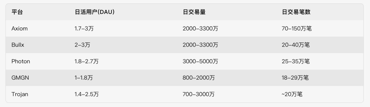 这些平台合计贡献超过 10 万日活用户和 1 亿美元日交易量,与市场观察相符。