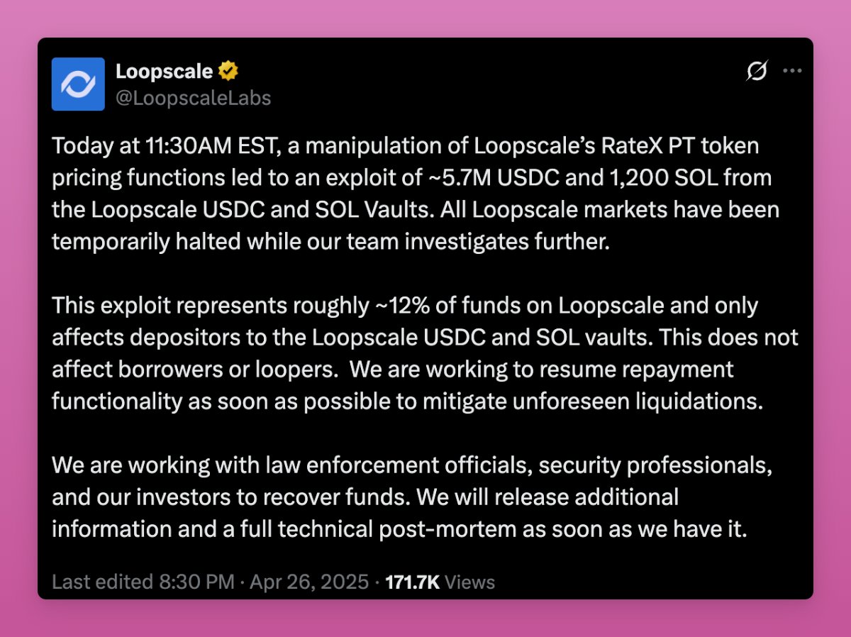 我通常避免恐慌性言论,但我与Loopscale的体验非常糟糕。