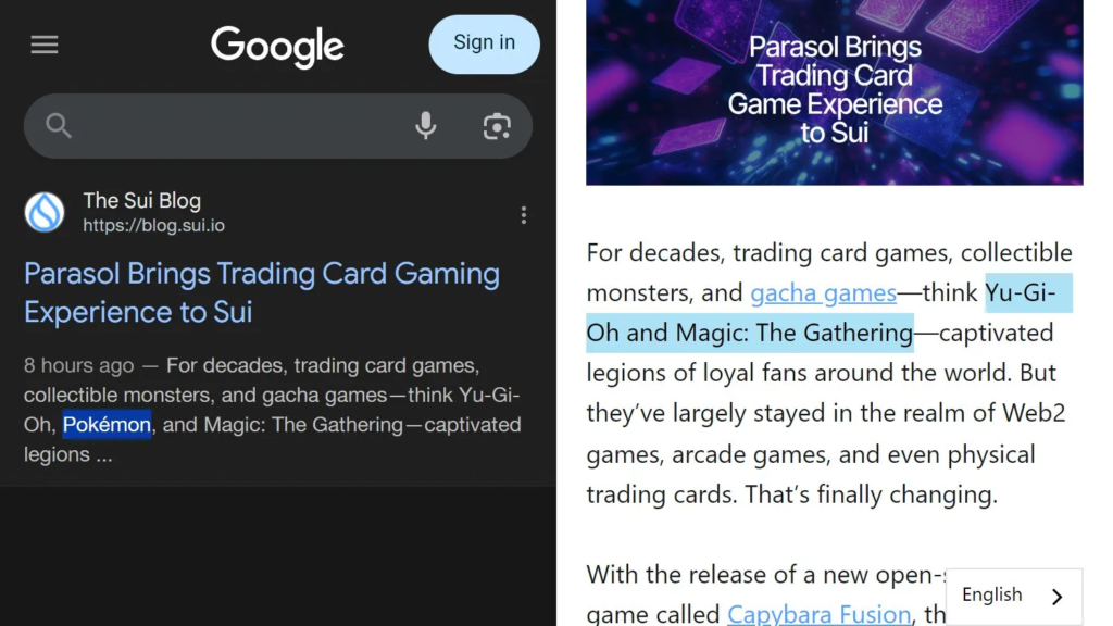 值得注意的是,Sui 基金会于 4 月 23 日释出的关于 Parasol 在 Sui 上推出集换式卡牌游戏的官方部落格文章中,并未提及 Pokémon。然而,有使用者声称该部落格的早期版本曾提及 PokémonNFT,但随后被编辑删除,这进一步加剧了市场的猜测。