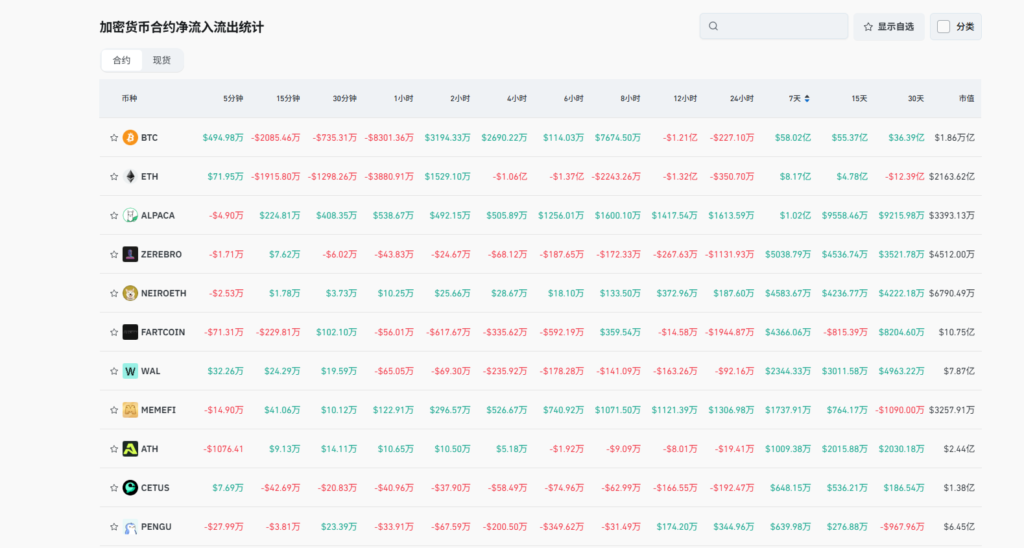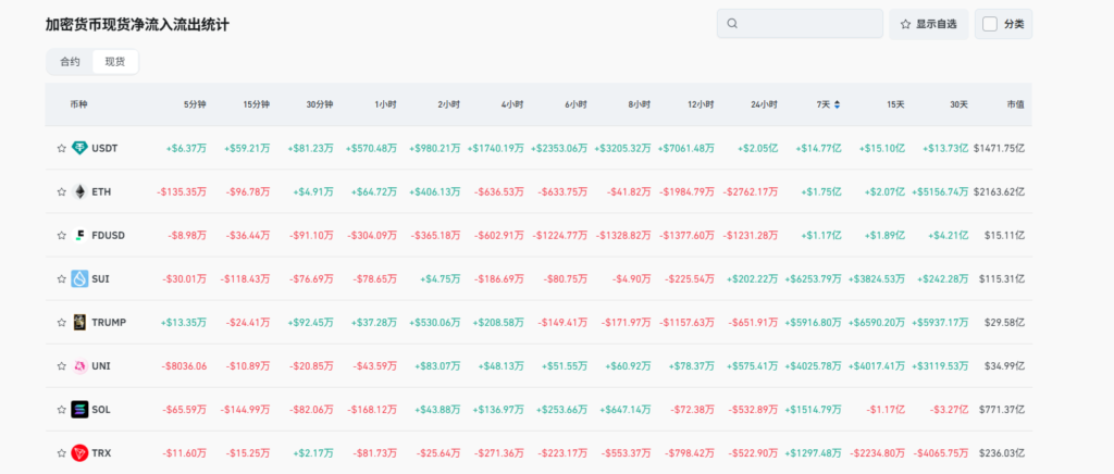 不过在交易所的资金流动上,Sui 生态的资金涌入较为明显。根据 Coinglass 的资料显示,近七天内 SUI 的现货资金流入达到 6286 万美元,排名所有币种的第四位,仅次于 USDT、ETH、FUSD。而在近七天的合约的资金流入排行榜当中,WAL、MEMEFI、CETUS 等几个 Sui 网路的生态代币也都跻身前十,也进一步反应出 Sui 生态的资金活跃度。