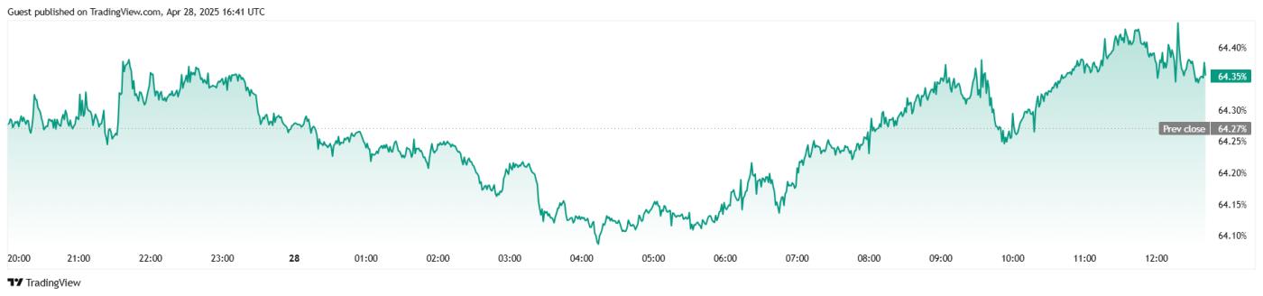 24小时交易量大幅增长71.64%,达到304.6亿美元,这是周末后上涨趋势的典型特征。比特币市值轻微上涨0.09%,达到1.86万亿美元,而BTC的主导地位上升0.17%,达到64.35%。尽管价格和交易量上涨,期货合约活动仍相对稳定,BTC的总未平仓利息略微下降0.12%,至635.25亿美元。