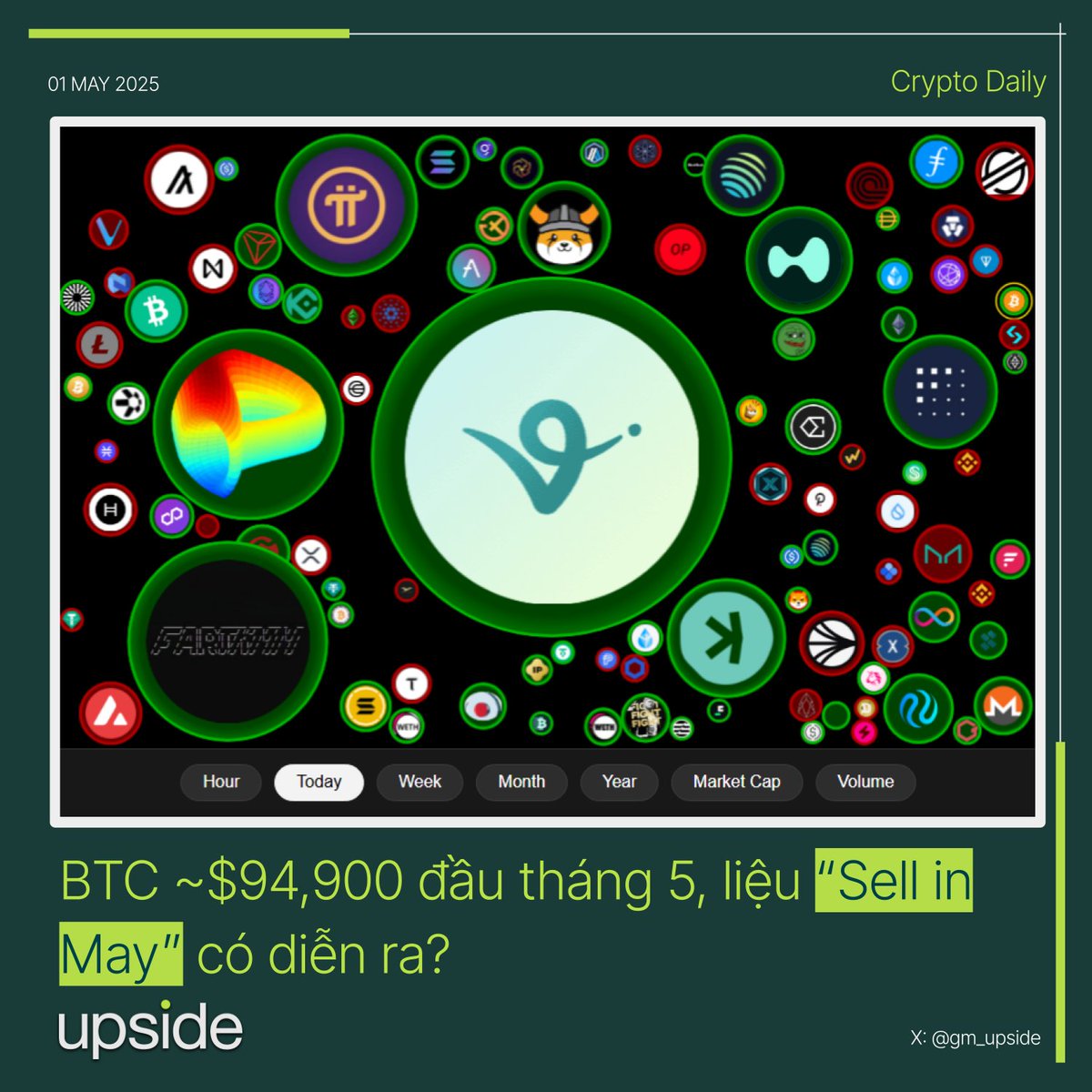 $BTC在4月以+14.2%结束,月线收盘价为94,172美元,目前在94,900美元附近波动。恐惧贪婪指数仍处于中性区域53。