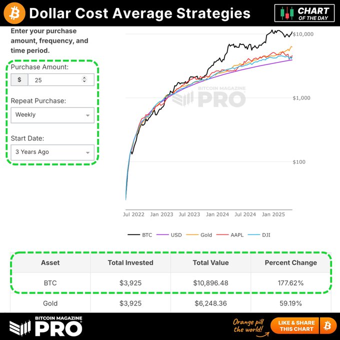Bitcoin Magazine Pro®05-06本文为机器翻译展示原文🚨 过去3年的平均成本投资表现 🚨 😬 美股:11.16% 🤔 黄金:59.19% 🤑 BTC:177.62% 每周仅投资25美元到#比特币,现在价值已接近11,000美元!🚀 使用下方免费的平均成本投资业绩工具! 👇 👇 👇图表可在此免费获取:相关赛道:减产概念来自推特免责声明:以上内容仅为作者观点,不代表Followin的任何立场,不构成与Followin相关的任何投资建议。喜欢收藏 评论分享相关推荐PANews交易时刻:白银新高后跳水,机构预警贵金属回调风险,比特币呈“死猫反弹”?BTC0.97%All-in stationFPT与VIX Securities合作,在越南建立资产交易所。BeInCrypto Việt Nam芝加哥商品交易所的最新举措令交易员担忧:为什么周一对于白银价格如此重要。
