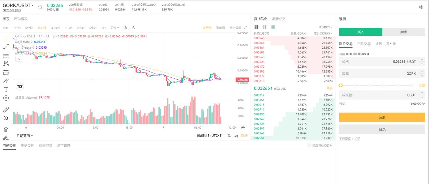 进入“交易 → 现货”,搜索 GORK/USDT,打开交易界面。
