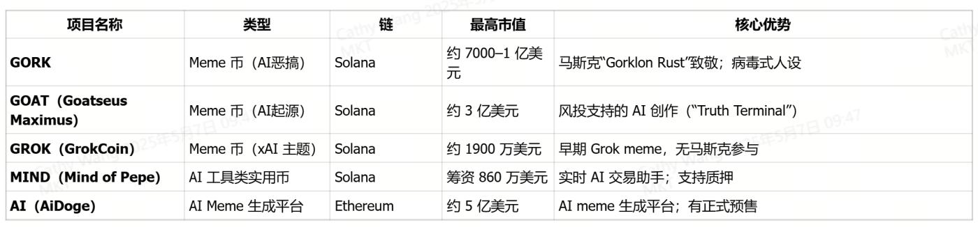 名人效应:只有 GORK 直接获得马斯克在社交媒体上的关注,带来了显著的初期价格波动。