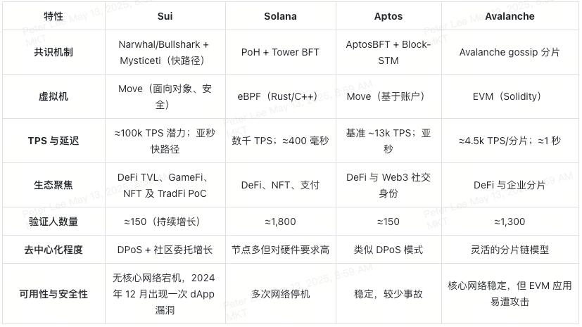 Sui 与 Solana、Aptos 和 Avalanche 对比分析