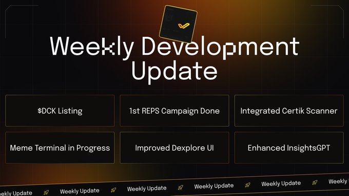 项目状态:DexCheck 每周开发更新 #17 我们在 REPS 平台上成功完成了第一周的推广活动,并在新的交易平台上线。在幕后,我们持续为 DexCheck 平台提供新功能并改进工具。 以下是