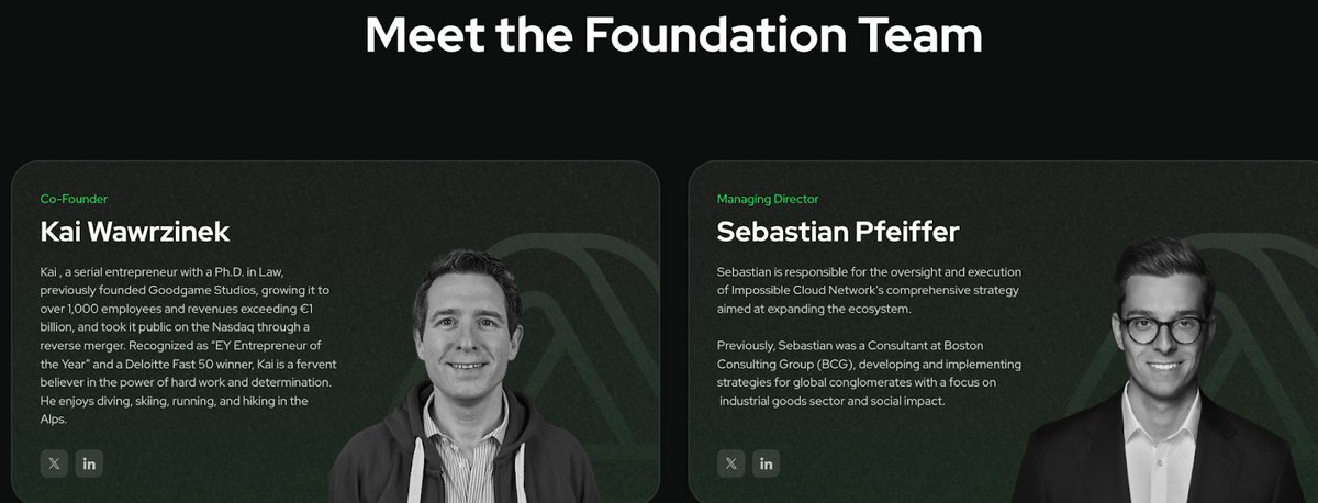 与许多 web3 团队不同, Impossible Cloud Network 的团队创办人皆有丰富的创业及 web2 相关职涯经验,团队主要来自德国