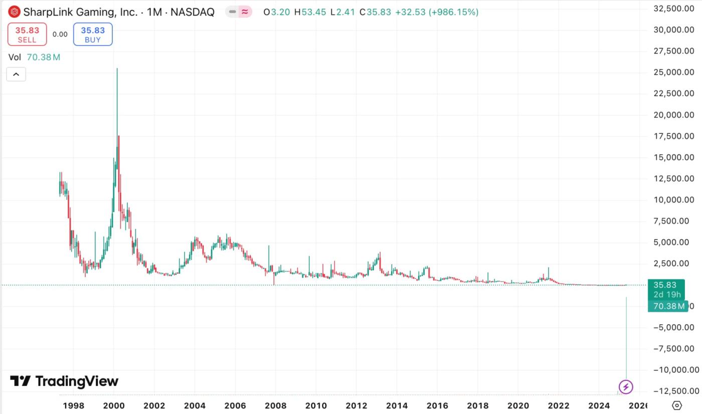 这一消息不仅标志着该体育博彩和 iGaming 行业的营销公司公司在区块链金融领域的重大转型,也引发了市场对其股票的反响。SharpLink Gaming 股价昨日一度飙升逾 700% ,反映了投资者对公司新战略的热情。不过社区反应呈现明显分化:乐观者将其比作「以太坊版 Strategy 时刻」;谨慎者则质疑这是否仅为短期市场炒作,暗指可能存在「空壳化」风险。