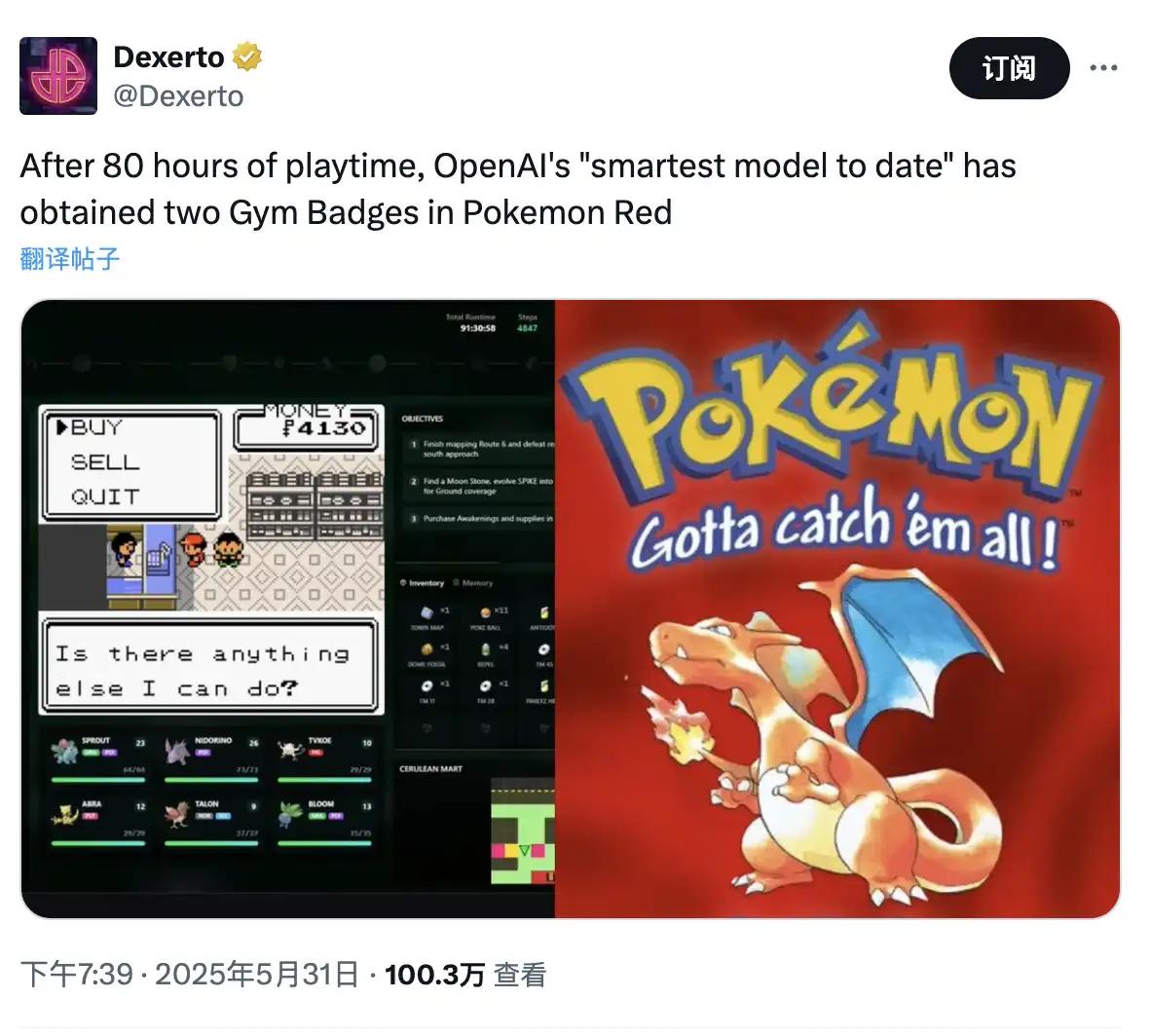 随着越来越多的 AI 模型挑战「通关」宝可梦游戏,前段时间的 Gemini 2.5 Pro 独立通关初代《宝可梦》谷歌的现任 CEO Sundar Pichai 和 DeepMind 负责人 Demis Hassabis 甚至同时发表推文庆祝了这一时刻。加上 Anthropic 的 Claude 和前几日的 OpenAI 独立获得两个宝可梦红的道馆徽章,越来越多的大模型成为了「宝可梦迷」,但让 AI 玩「宝可梦」比让 AI 「下棋」更有时代意义。
