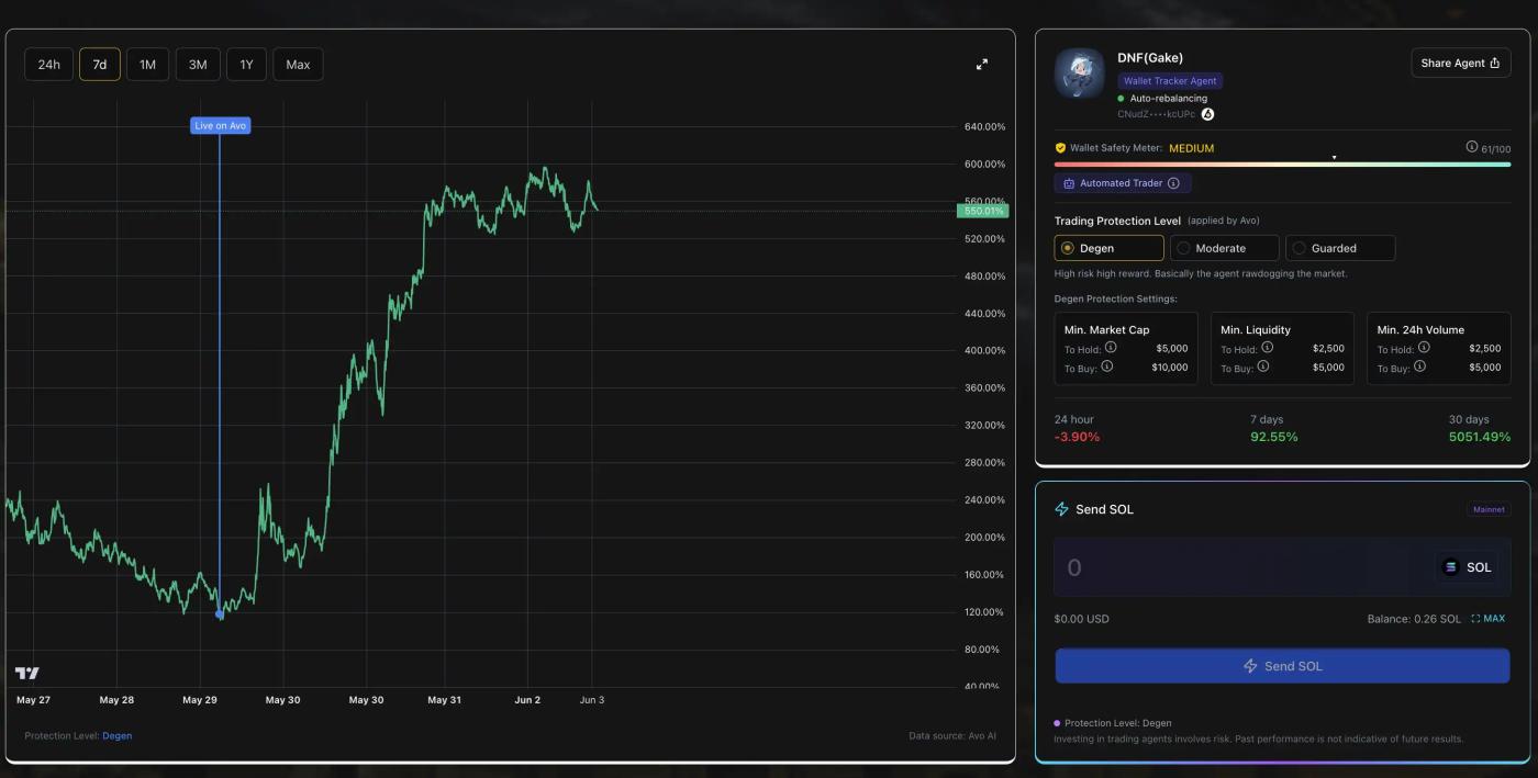 AVO 是一个交易 AI Agent 的市场,包括钱包跟踪、机构跟单、质押、空投猎手等等类型的 AI Agent。当下这个平台上主要出售链上的交易策略。