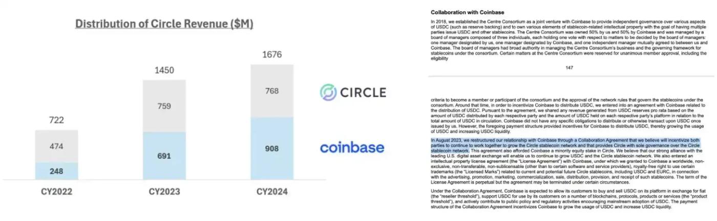 Circle 招股书中对 Coinbase 分润条款的详细描述