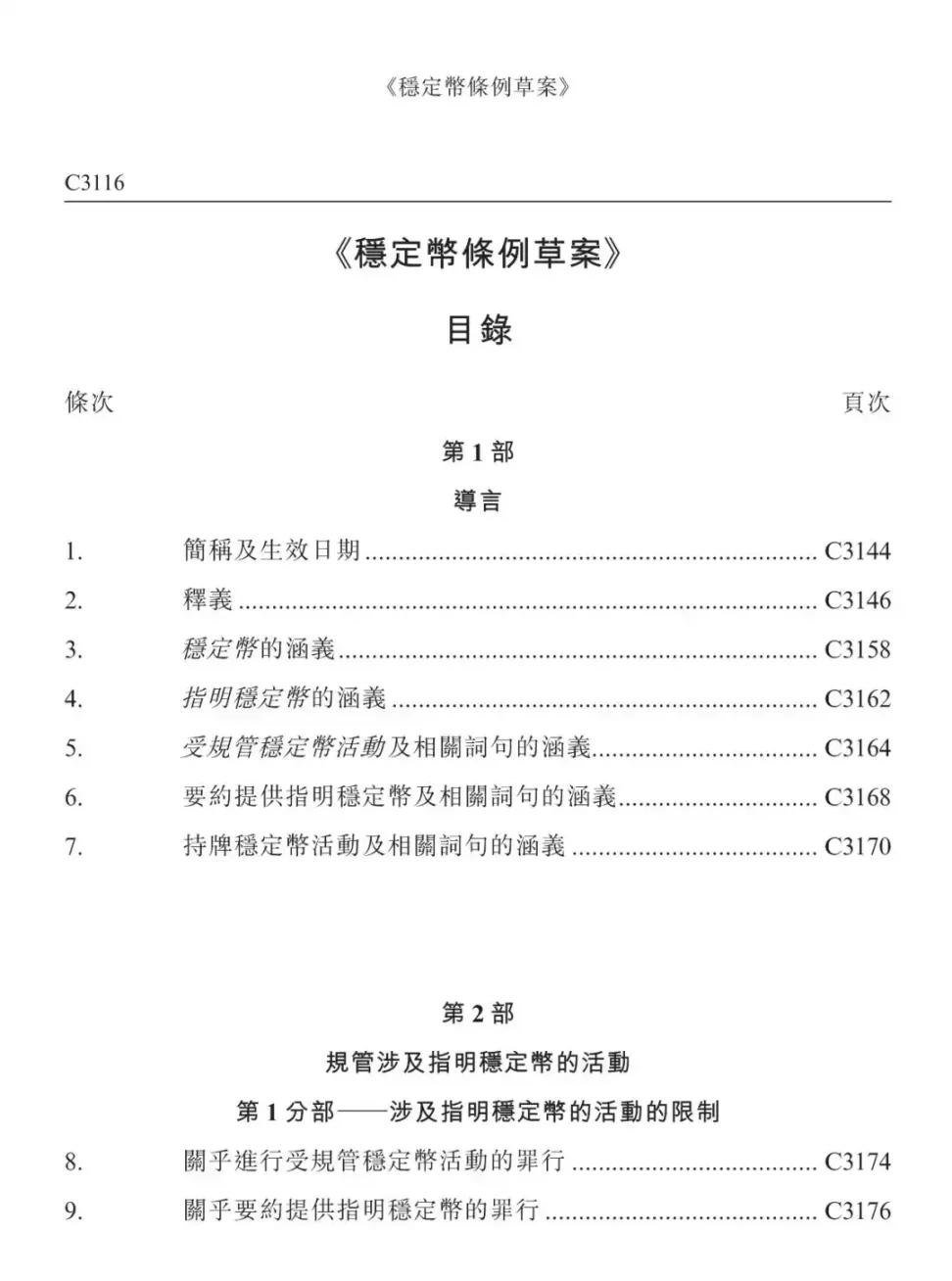 香港稳定币条例草案目录,该条例于 5 月 21 日香港立法会三读通过